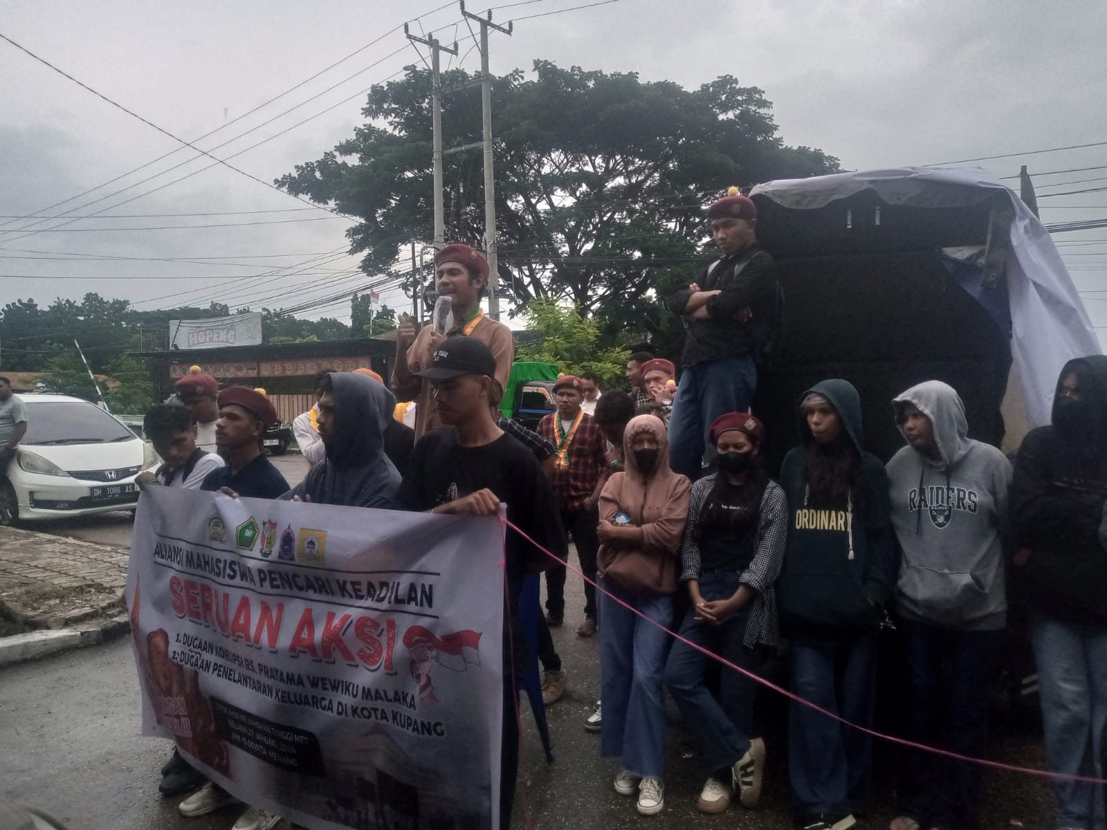 ‎Sejumlah mahasiswa yang tergabung dalam Aliansi Mahasiswa Pencari Keadilan menggelar aksi demonstrasi di Kantor Kejaksaan Tinggi (Kejati) Nusa Tenggara Timur (NTT), Kupang pada Selasa (27/1/2026).