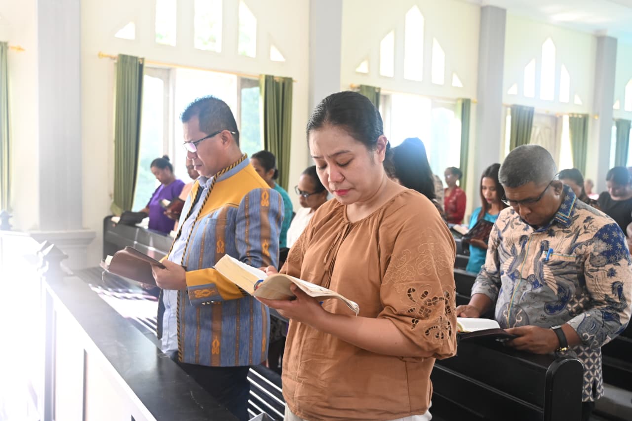 Ibadah dipimpin oleh Pdt. Dorkas Beeh-Nyake Wiwi, S.Th., dengan pembacaan Firman Tuhan dari Kitab Keluaran 14:15–31 bertema “Tuhan Menyediakan Jalan”. Nas tersebut mengisahkan bangsa Israel yang berada dalam situasi terjepit antara Laut Teberau dan pasukan Mesir, namun mengalami pertolongan Tuhan yang membuka jalan di tengah ketidakberdayaan. Suasana kebaktian berlangsung khidmat dan penuh kebersamaan.