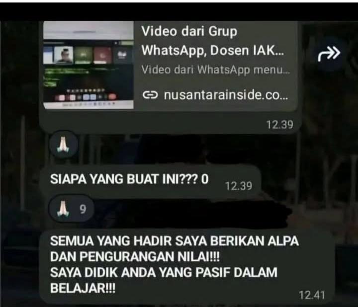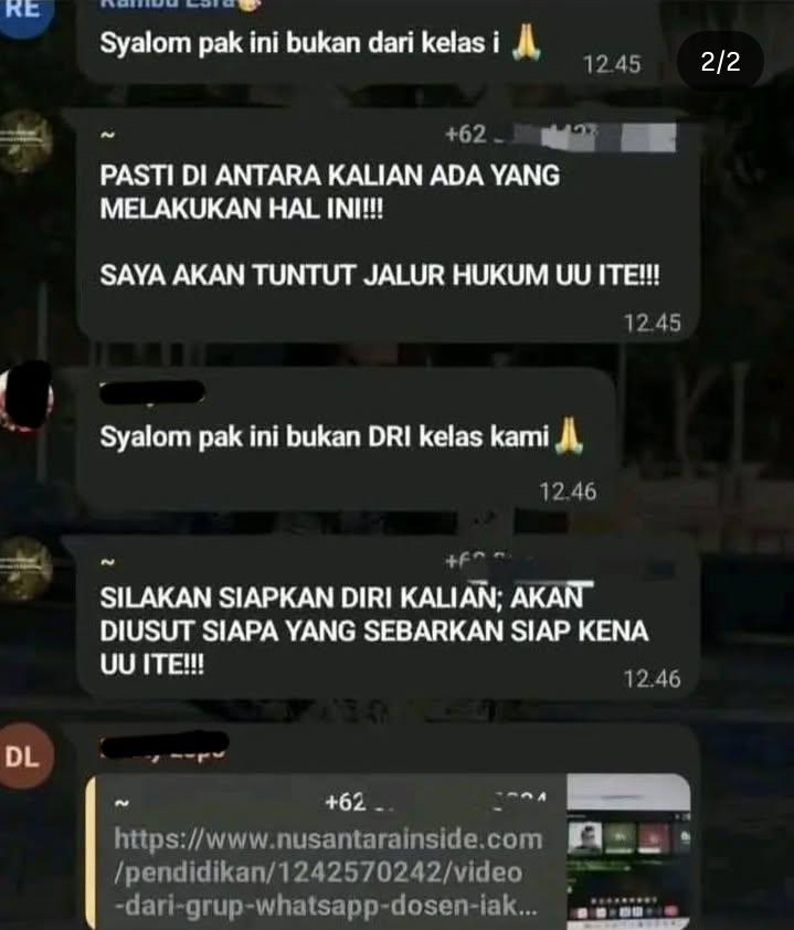 Tidak berhenti di situ, setelah video viral, oknum dosen tersebut kembali menuai kontroversi. Dalam percakapan di grup WhatsApp, ia mengancam mahasiswa yang merekam dan menyebarkan video tersebut.
