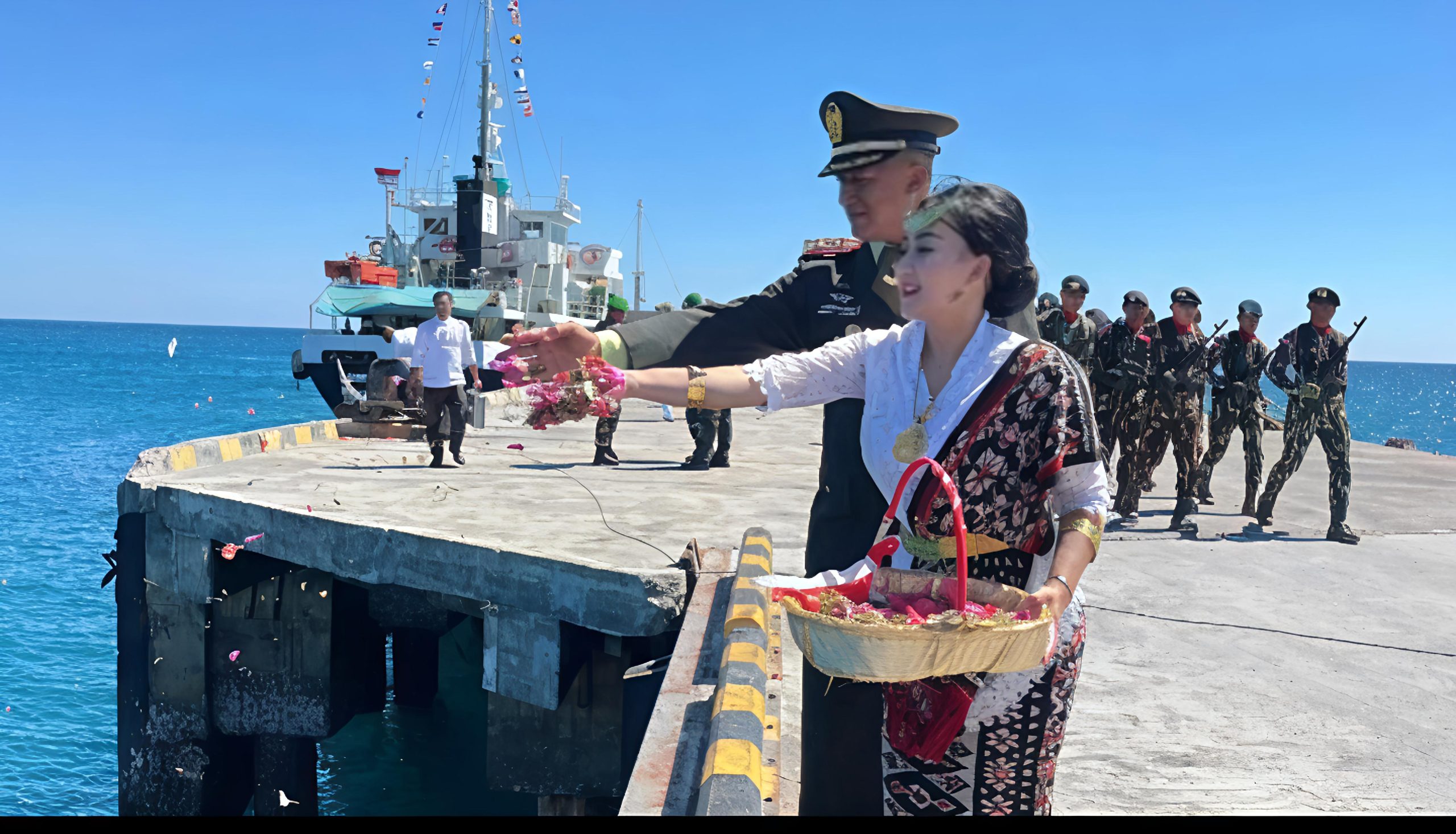 Dalam rangka memperingati HUT Ke-80 Kemerdekaan Republik Indonesia, Dandim 1627/Rote Ndao, Letkol Kav Kurnia Santiadi Wicaksono,SH.,di dampingi Ketua Persit cabang XXXXII Kodim 1627/ Rote Ndao, Ny. Sarlita Rahmawati turut mengikuti Upacara Tabur Bunga yang digelar di Pelabuhan Ba’a, Minggu (17/08/2025).
