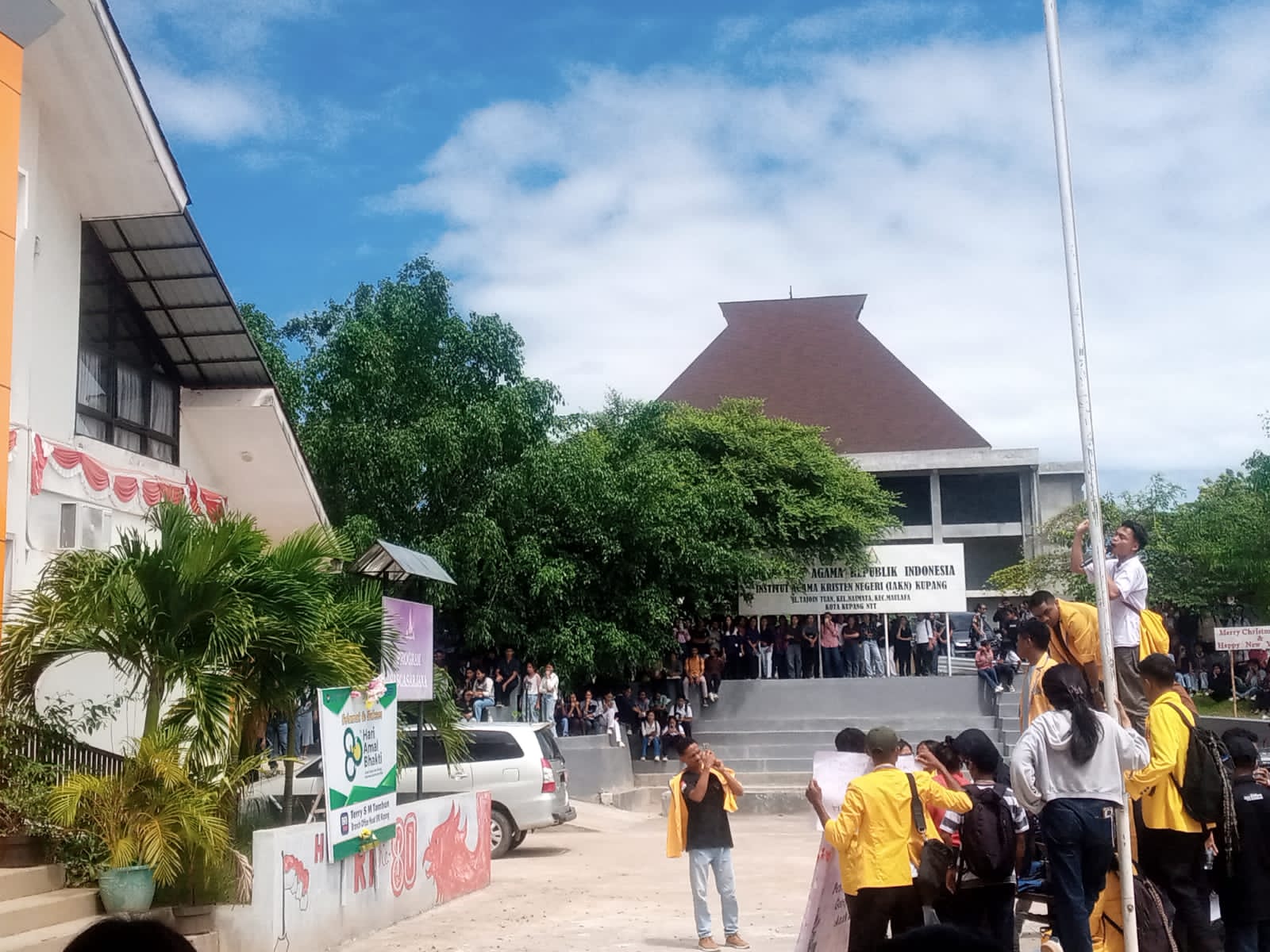 ORMAWA PT (DPM & BEM PT) Institut Agama Kristen Negeri Kupang bersama alumni melakukan aksi demonstrasi pada Selasa, 28 April 2026. Aksi tersebut merupakan bentuk peduli terhadap marwah kampus, menyatakan sikap atas tindakan kekerasan verbal yang dilakukan oleh dosen Jeheskiel Saudale, dalam proses pembelajaran online semester IV, kelas J & I, pada mata kuliah Strategi Pembelajaran PAK, pada Rabu, 2 April 2026.