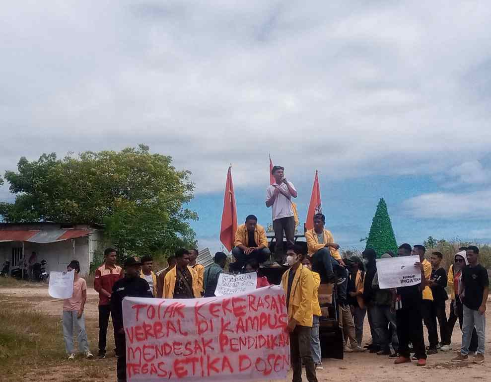 Aksi demonstrasi mahasiswa di Institut Agama Kristen Negeri (IAKN) Kupang menyoroti kekerasan verbal yang dilakukan oleh seorang dosen berinisial JS. Dalam orasi yang disampaikan di lokasi aksi, massa menegaskan penolakan keras terhadap sikap dosen tersebut yang dinilai telah merendahkan martabat mahasiswa.