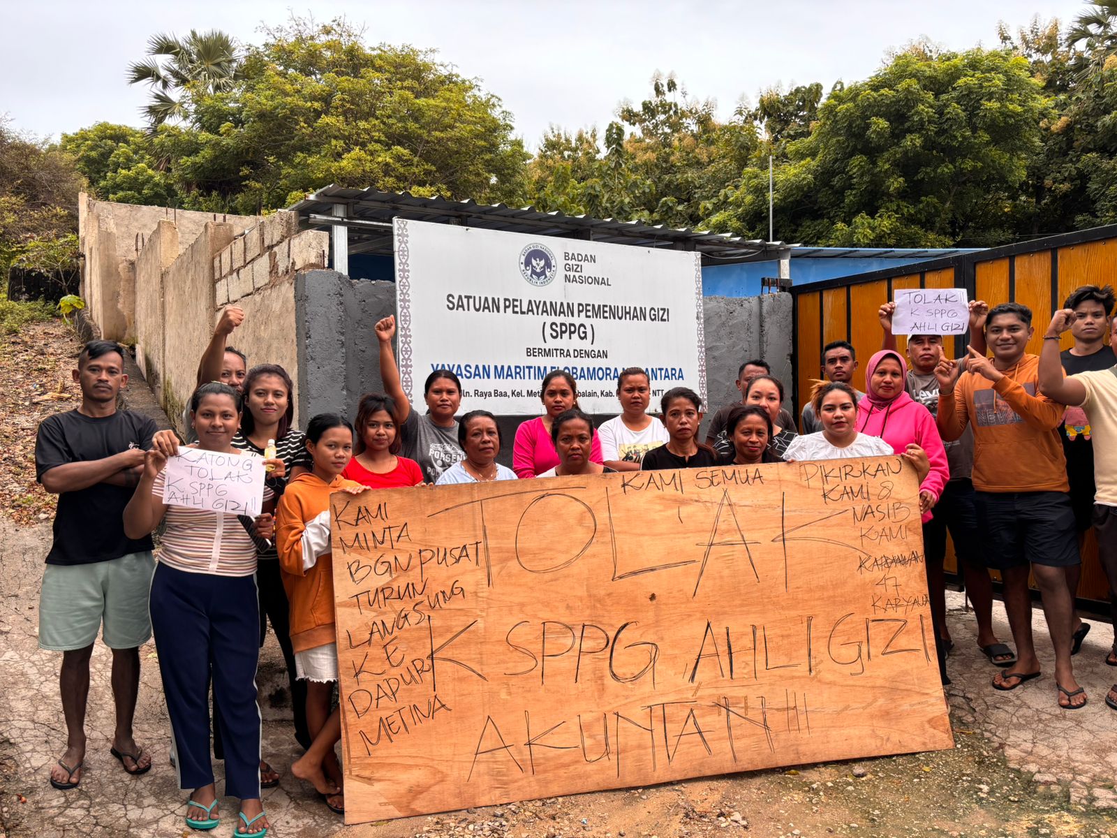 Dalam tuntutannya, para relawan meminta dapur MBG Metina dapat kembali beroperasi setelah kondisi cuaca membaik. Mereka juga menolak keberadaan kepala SPPG, ahli gizi, dan akuntan yang dinilai tidak bijaksana dalam menyelesaikan persoalan.