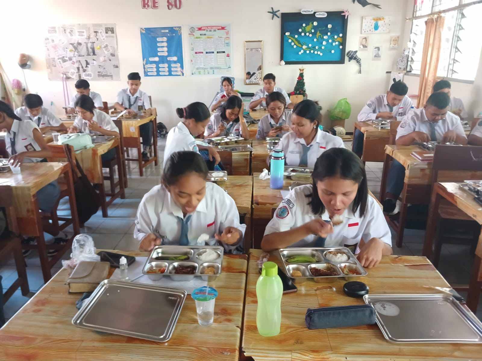 “Makannya enak, lauknya gurih dan sehat. Program ini sangat membantu kami menghemat uang jajan,” ungkap Alexandra.