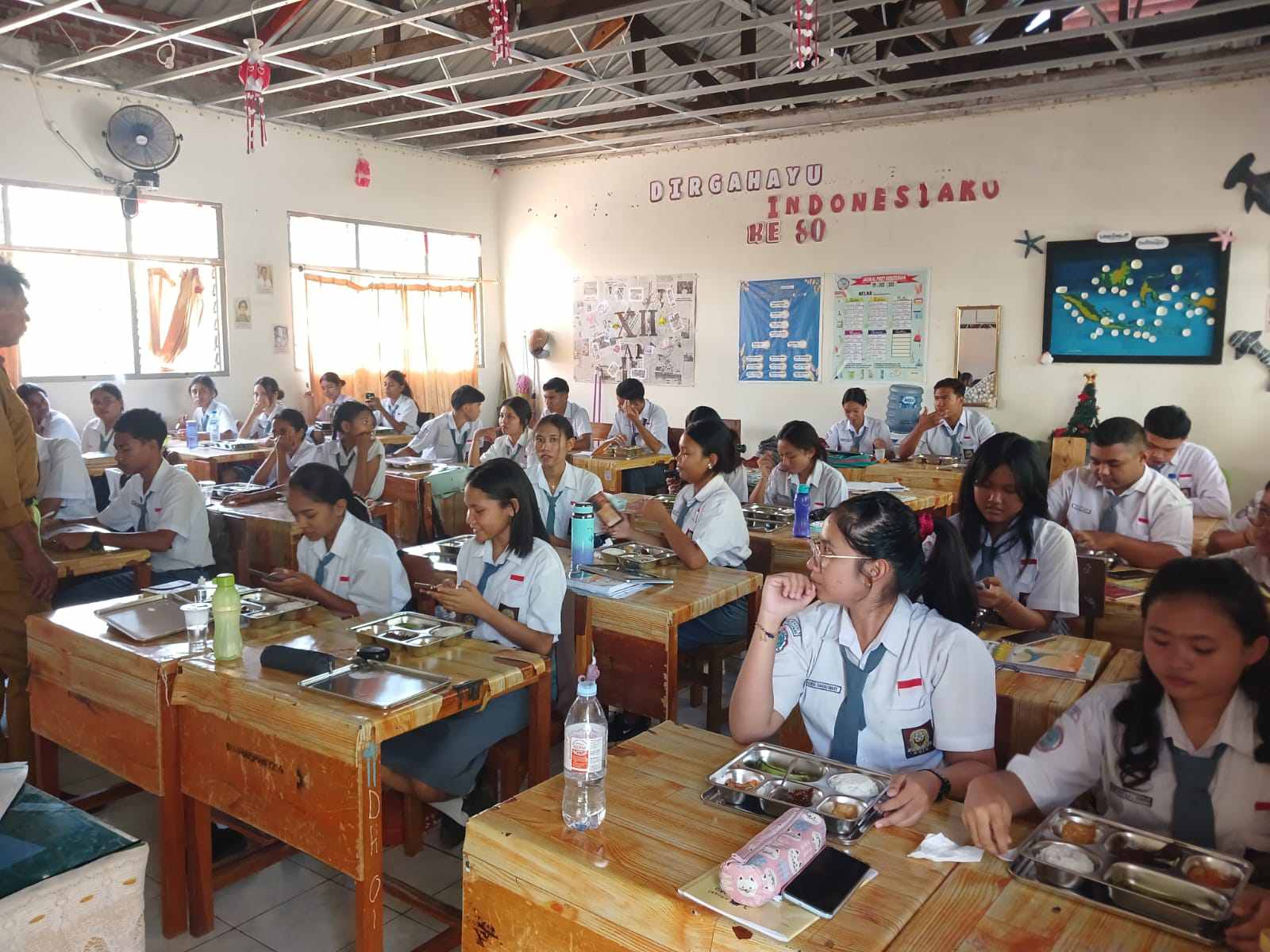 “Makannya enak, lauknya gurih dan sehat. Program ini sangat membantu kami menghemat uang jajan,” ungkap Alexandra.